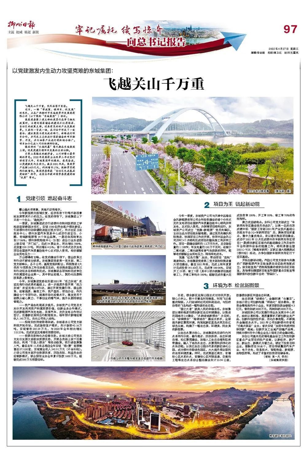 4月27日,柳州日报第19756期,第97版刊登《以党建激发内生动力攻坚克难的东城集团:飞越关山千万重》一文。